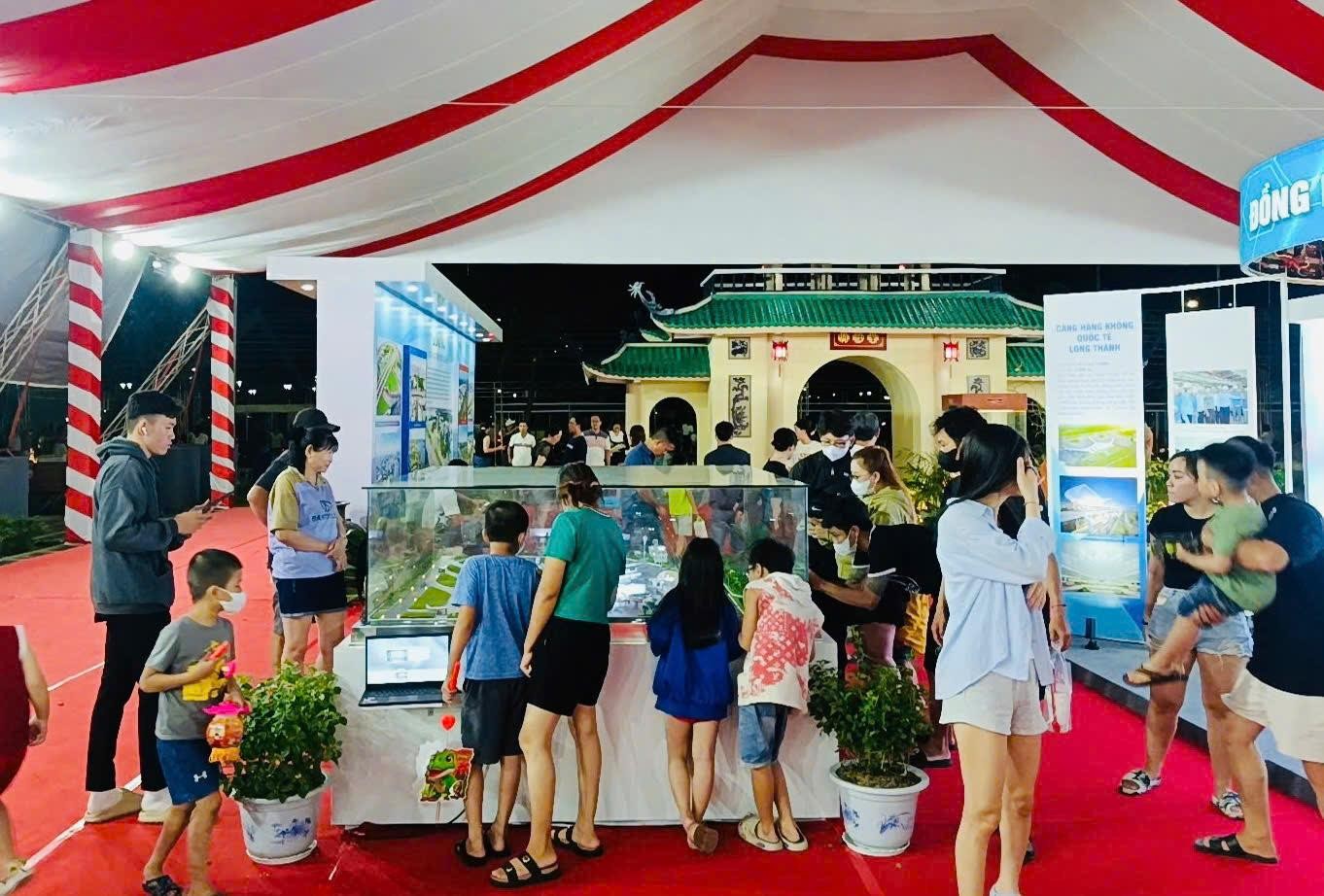 Nổi bật ở cụm trưng bày này là mô hình Cảng hàng không quốc tế Long Thành - công trình trọng điểm quốc gia đang được đẩy nhanh tiến độ, biểu tượng cho bước “cất cánh” mạnh mẽ của tỉnh Đồng Nai và vùng kinh tế trọng điểm phía Nam trong tương lai. Cảng hàng không quốc tế Long Thành được xây dựng trên diện tích khoảng 5.000 ha, dự kiến hoàn thành giai đoạn 1 vào cuối năm 2025, công suất phục vụ 100 triệu lượt khách và 5 triệu tấn hàng hóa một năm.