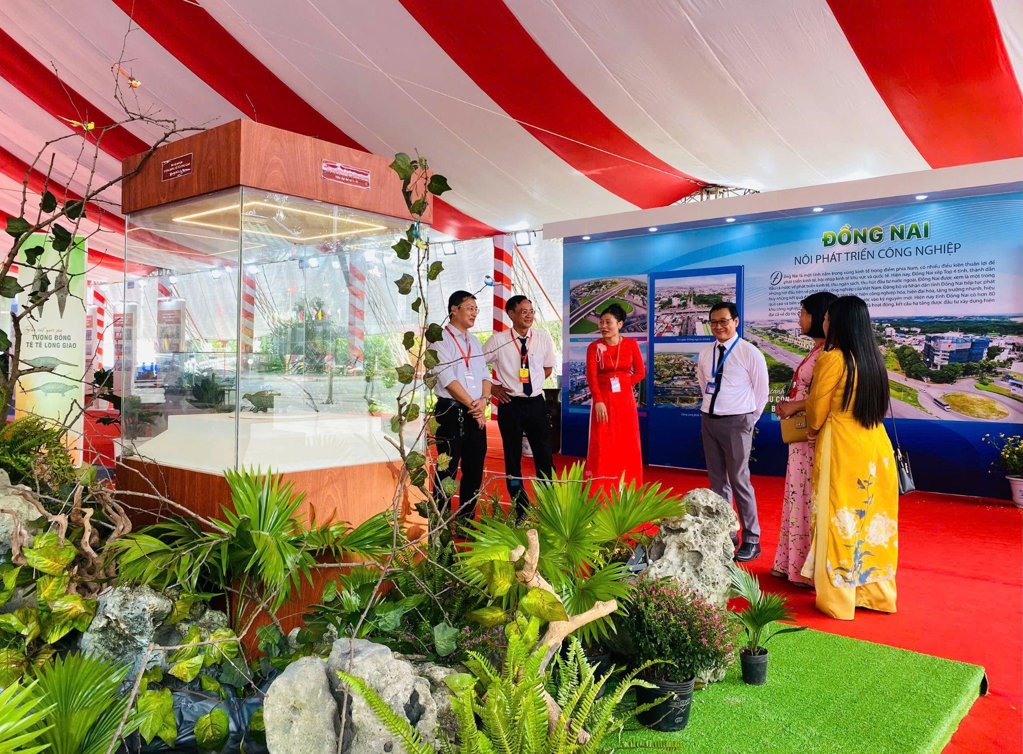 Bảo vật quốc gia Tượng đồng Tê Tê Long Giao, hiện vật có niên đại khoảng thế kỷ I-II, là hiện vật gốc, độc bản, có hình dáng độc đáo không chỉ mang ý nghĩa văn hóa tín ngưỡng mà còn chứng minh được tài năng của các nghệ nhân đúc đồng vùng đất Đồng Nai thời tiền - sơ sử. Bên cạnh không gian văn hóa còn trưng bày giới thiệu, trải nghiệm bản chế tác về Bảo vật quốc gia - Đàn đá Lộc Hòa (có niên đại 3.000 năm), góp phần khẳng định bề dày lịch sử - văn hóa, tín ngưỡng và dấu ấn của con người trên đất Đồng Nai. Đàn đá Lộc Hòa có 14 thanh được chế tác từ đá sừng, có màu xám đen, là loại đá có nguồn gốc phun trào từ núi lửa. Đàn đá được tách bóc toàn bộ lớp vỏ ngoài của đá nguyên liệu, ghè tu chỉnh chính xác để định hình từng thanh đá, đánh lên ngân vang, trong trẻo như vọng từ thượng cổ đại ngàn. Trong cụm trưng bày lịch sử, tự nhiên và bản sắc văn hóa truyền thống, triễn lãm giới thiệu về một Đồng Nai đa dân tộc, đa bản sắc văn hóa. Các dân tộc trên đất Đồng Nai sống cộng cư nhưng vẫn giữ được các giá trị văn hóa riêng, đặc sắc, đó là ẩm thực, trang phục, lễ hội, tập quán tín ngưỡng… Tại đây, khách tham quan được chiêm ngưỡng bức tranh văn hóa phong phú, đặc sắc của các dân tộc sinh sống trên địa bàn tỉnh như Chơ Ro, Xtiêng, Mạ, Mnong...