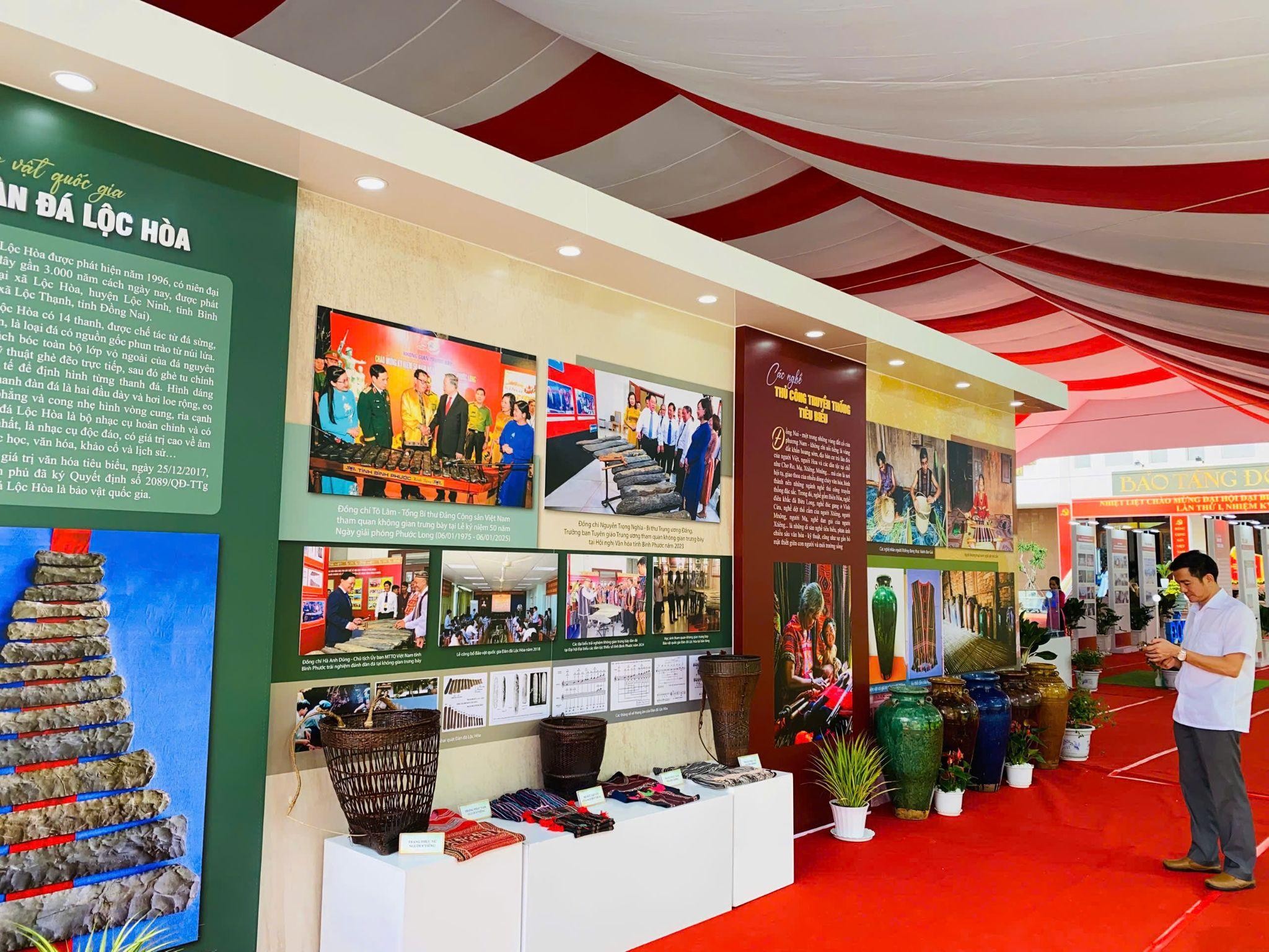 Bảo vật quốc gia Tượng đồng Tê Tê Long Giao, hiện vật có niên đại khoảng thế kỷ I-II, là hiện vật gốc, độc bản, có hình dáng độc đáo không chỉ mang ý nghĩa văn hóa tín ngưỡng mà còn chứng minh được tài năng của các nghệ nhân đúc đồng vùng đất Đồng Nai thời tiền - sơ sử. Bên cạnh không gian văn hóa còn trưng bày giới thiệu, trải nghiệm bản chế tác về Bảo vật quốc gia - Đàn đá Lộc Hòa (có niên đại 3.000 năm), góp phần khẳng định bề dày lịch sử - văn hóa, tín ngưỡng và dấu ấn của con người trên đất Đồng Nai. Đàn đá Lộc Hòa có 14 thanh được chế tác từ đá sừng, có màu xám đen, là loại đá có nguồn gốc phun trào từ núi lửa. Đàn đá được tách bóc toàn bộ lớp vỏ ngoài của đá nguyên liệu, ghè tu chỉnh chính xác để định hình từng thanh đá, đánh lên ngân vang, trong trẻo như vọng từ thượng cổ đại ngàn. Trong cụm trưng bày lịch sử, tự nhiên và bản sắc văn hóa truyền thống, triễn lãm giới thiệu về một Đồng Nai đa dân tộc, đa bản sắc văn hóa. Các dân tộc trên đất Đồng Nai sống cộng cư nhưng vẫn giữ được các giá trị văn hóa riêng, đặc sắc, đó là ẩm thực, trang phục, lễ hội, tập quán tín ngưỡng… Tại đây, khách tham quan được chiêm ngưỡng bức tranh văn hóa phong phú, đặc sắc của các dân tộc sinh sống trên địa bàn tỉnh như Chơ Ro, Xtiêng, Mạ, Mnong...